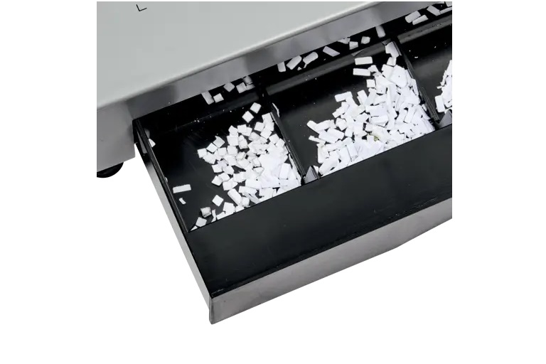 Equipped with 21 selector pins and adjustable margin depth, the CB25E Pro allows precise alignment for A4, A5, and A3 portrait documents. The horizontal loading and easy‑access clippings tray enhance everyday usability.